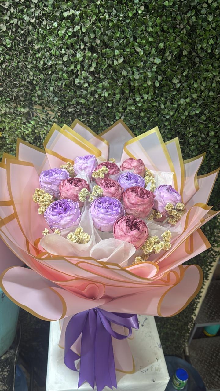 BELLO RAMO DE 12 PEONIAS PRESERVADAS